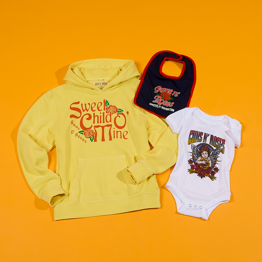 You’re never too young to rock out to Guns N’ Roses . Inspired by the vibrant energy of GN’R, this kids collection features bold graphics, edgy designs, and comfortable pieces for the little rockstar in your life!