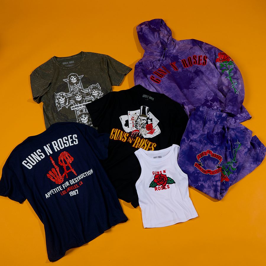 Dress right for Paradise City with Guns N’ Roses apparel items. From polos to tees, each item features artwork or embroidery inspired by tours, songs, and performances. Come on down to Paradise City, where the grass is green, and the apparel is pretty!